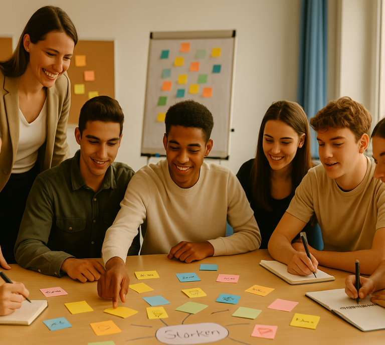 Durch gezielte Impulse und reflektierende Übungen lernen die Jugendlichen, ihre Leidenschaften, Stärken und Ziele zu identifizieren.